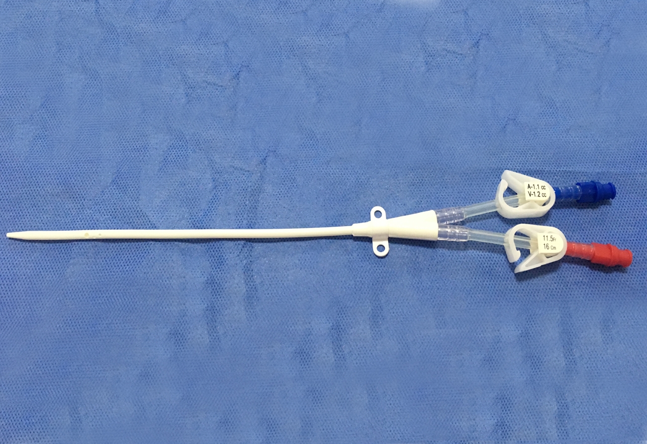 血液透析导管及附件分为标准装和复合装。产品组件包括:血液透析导管(配导管夹或滑扣)、穿刺针、导丝(含一次性使用导丝控制手柄)、扩张器、一次性使用无菌注射器、一次性使用无菌注射针、一次性无菌输液接头、无菌塑柄手术刀、带线缝合针、粘贴伤口敷料、一次性使用灭菌橡胶外科手套、消毒刷、纱布块(外科纱布敷料)、一次性无菌孔巾、一次性医用中单、棉球(医用脱脂棉织品)、一次性使用导管固定翼(可选)。另血液透析导管及附件应有一个可以防止器械相互碰撞的托盘。