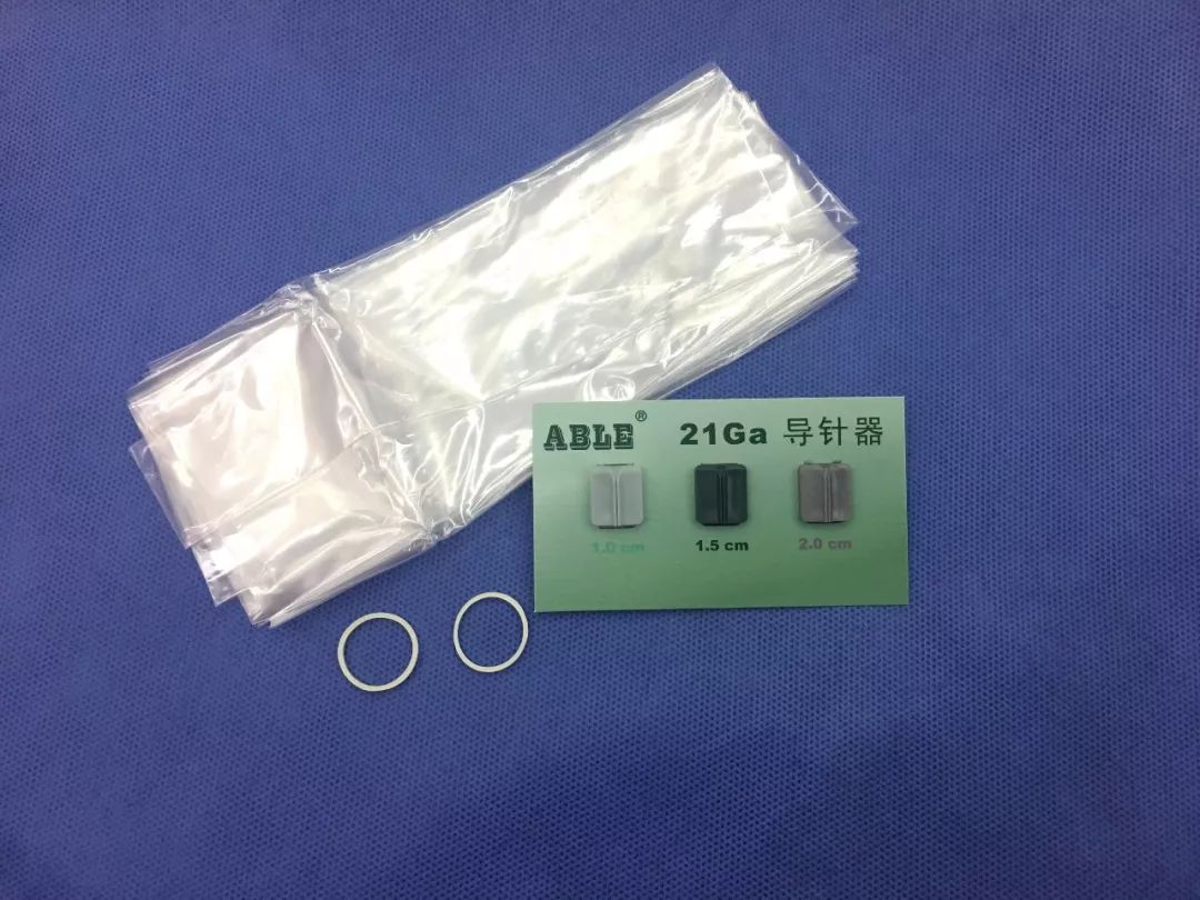 产品由导针器,探头护罩、弹性圈,一次性医用中单组成。