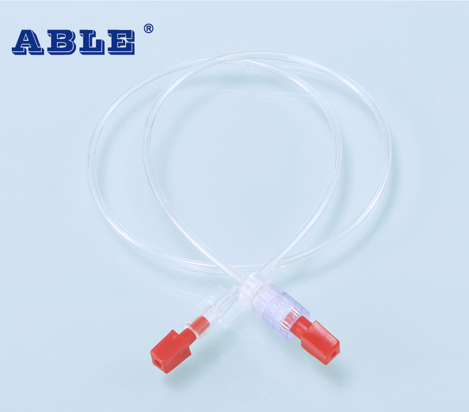 一次性无菌输液延长管产品采用聚碳酸酯、聚氨酯和聚氯乙烯制成,为线性管状或螺旋管状结构,由管体、公(母)接头、护帽组成,产品一次性使用。